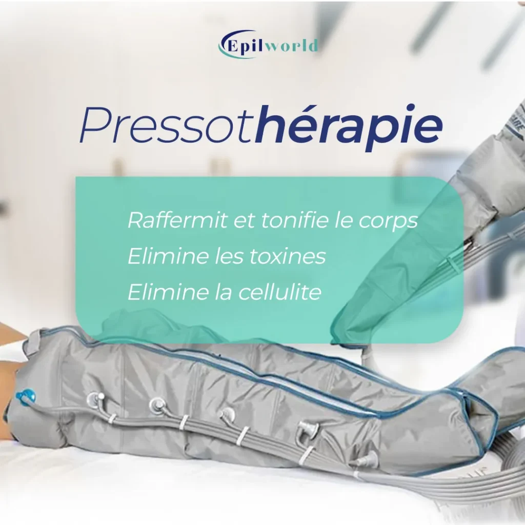 La Pressothérapie est une méthode non invasive qui repose sur la compression et décompression successive de différentes zones du corps à l’aide d’un appareil spécifique.